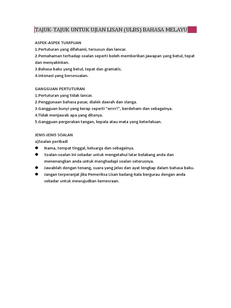 Ujian Mendengar Bahasa Melayu Spm : Contoh Ujian Lisan Bahasa Melayu Bertutur Pt3 Bm 2022